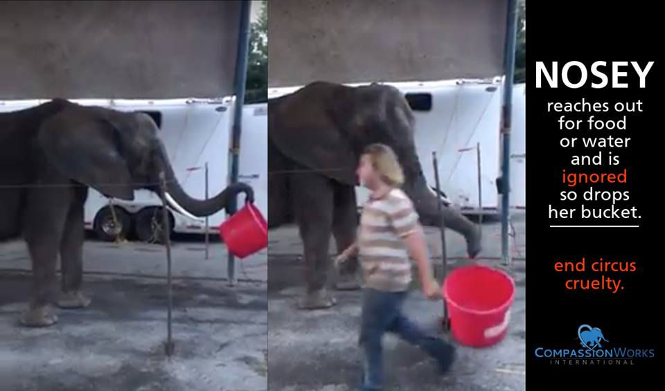 Since our last update, Nosey has been found traveling throughout northeast Ohio giving rides and performing stupid tricks at "circuses" held primarily in parking lots. Sadly, today we saw video of her out of Hanoverton, OH reaching out to the Liebel family son for food or water. She picked up her bucket and reaches out to him with it, yet he chose to ignore her entirely. She then dropped her bucket when she realized he would pay her no attention. It was heartbreaking to see how they treat "family." The type of tiny circus that she is currently performing in does not invest in marketing, so there is no telling where she might pop up. She is currently about 40 miles southwest of Youngstown, OH in the small town of Hanoverton. Hanoverton is hosting their first, and we hope, their last circus. If you live in or near Hanoverton, please write to government officials there to let your thoughts on circus cruelty be known. Nosey (currently being called Tiny) has been moving every 3-4 days within a few hours drive of her previous location. So if you are in northeast Ohio, or in the Columbus, OH or Pittsburgh, PA areas, please be vigilant for any circus tents that pop up. If you see one, please contact us straight away at info@cwint.org with an address and any other information you can find. The hearing the Liebel family must attend with the Florida Fish and Wildlife Commission (FWC) regarding their revoked permit is set to take place in October. We suspect they may not return Nosey to Florida until which time they manage to resolve their permitting issues with the FWC. The family has been raising money for legal assistance to help with their case, but thus far have not been successful at raising everything they are seeking. As updates arise on that situation, we will continue to update this petition. Thank you again for your continued interest in Nosey and for helping CWI to pursue a better life for her. Finally, we hope that you will consider supporting us by making a tax-deductible donation of any amount at cwint.org/donate so that we can continue our work for Nosey and all animals still suffering inside the circus. Ps. Please continue to share Nosey's petition: https://www.change.org/p/usda-and-congress-please-help-to-rescue-an-abused-elephant-named-nosey. You can also read all of our previous updates on her case with the FWC by scrolling to the "updates" section of the petition. Thank you!