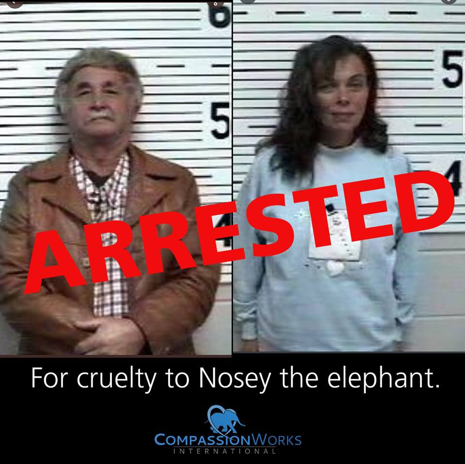 CWI received some stunning news just moments ago: the "owners" of Nosey the elephant have been arrested for charges of animal cruelty related to Nosey! The Liebels were being processed into jail in Lawrence County, Alabama on December 16th and then released on bail. We can also share that the trial for Nosey took place December 15th and went on for an extremely long 10.5 hours during which time both sides presented their case. During the trial, the veterinarian for the prosecution shared that Nosey has had x-rays completed that prove she suffers from osteoarthritis. When she arrived at the sanctuary, she was also found to have a urinary tract infection, roundworm, and an ongoing severe skin disorder, which has caused deep and painful cracks in her skin that were also riddled with infection. This disorder has been present for some time, and causes her pain as she moves. In short, Nosey needs the ongoing care of a professional veterinarian in order to live her best life, which is NOT something the Liebel family can or will provide. The judge will be issuing a written decision in the near future. CompassionWorks International has already filed a request to be immediately notified when that decision has been filed. At that time, we will provide yet another update on the fight for Nosey!